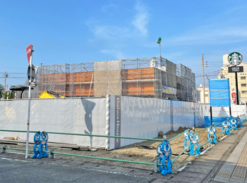 高城で建設中のスターバックスコーヒーに看板が設置されてる!