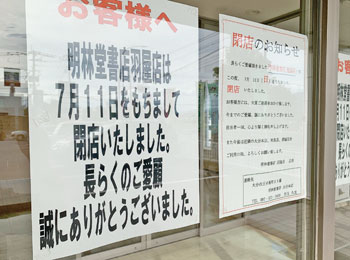 「明林堂書店 羽屋店」が2021年7月11日で閉店してる